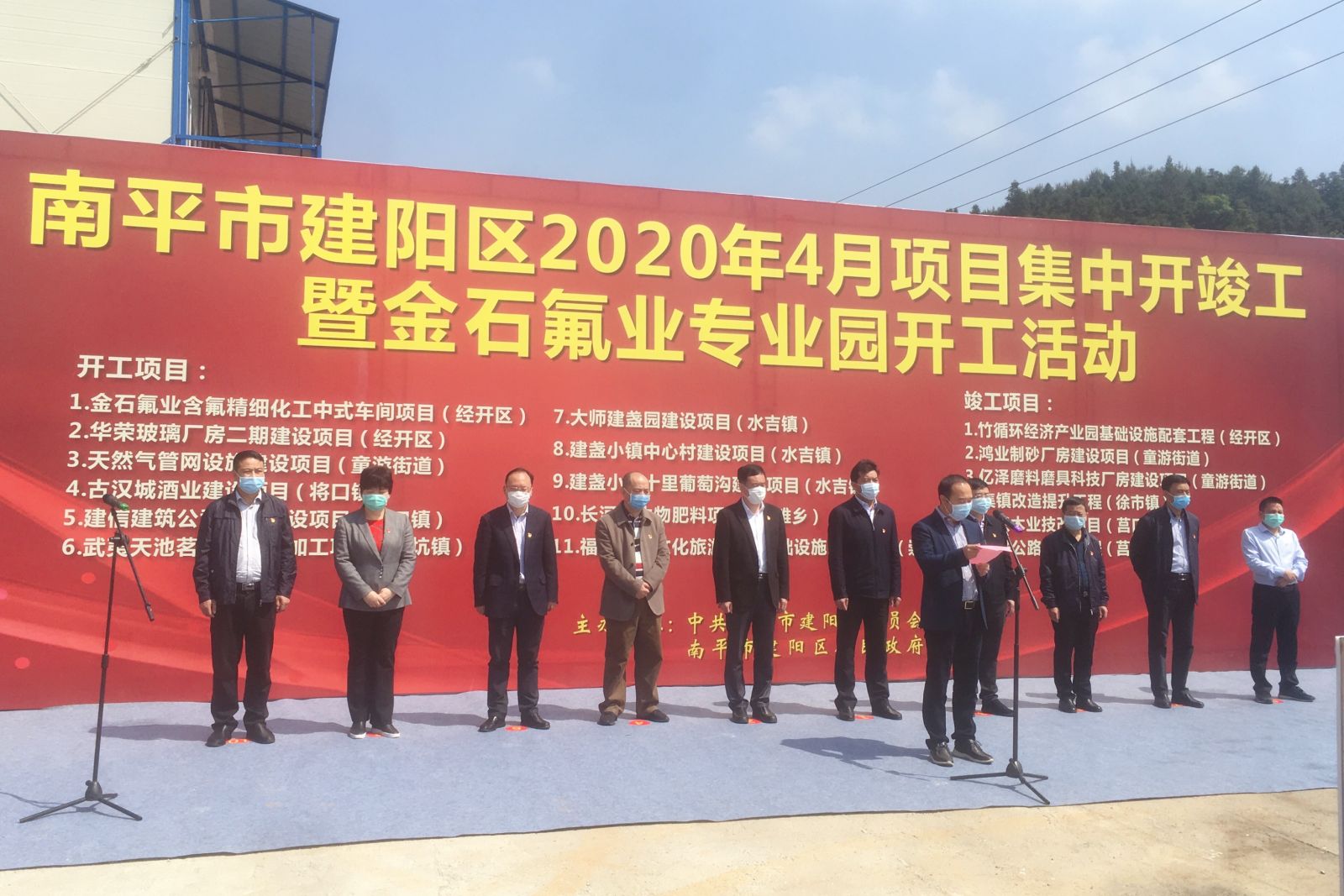 4月24日,我區(qū)舉行4月份重大項目集中開竣工儀式。南平市副市長何明星,建陽區(qū)委書記楊新強、區(qū)長魏敦盛等區(qū)黨政班子領導,區(qū)直有關(guān)單位、項目業(yè)主單位主要負責人和監(jiān)理單位、施工單位代表參加活動。儀式現(xiàn)場,何明星宣布項目開工,楊新強致辭,魏敦盛主持,公司董事長陳建華代表項目業(yè)主發(fā)言。